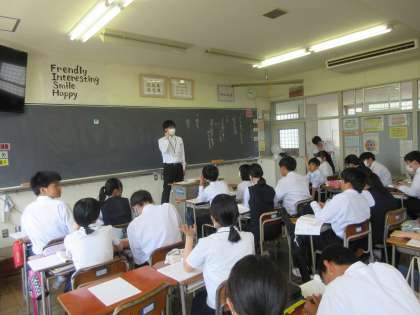 本日2限の道徳の授業の様子です。ある中学生の体験談を読み、自分らしい生き方をするために何が大切であるか、を考えました。本日は教育実習生の授業でした。グループ内で活発に意見交換を行い、自分の生き方を見つめるよい機会となりました。