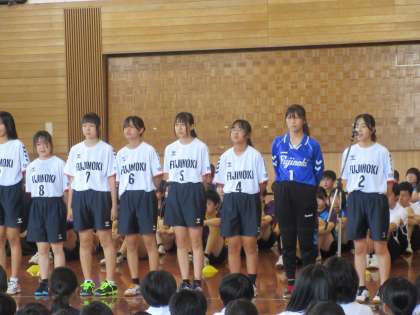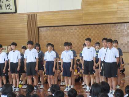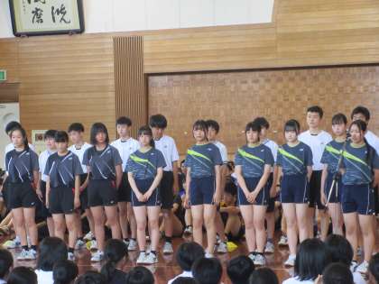 バドミントン部、ハンドボール部の決意表明の様子です。