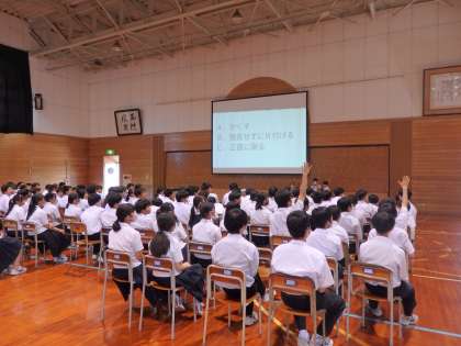 6限に14歳の挑戦実行委員による集会を行いました。