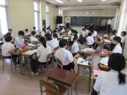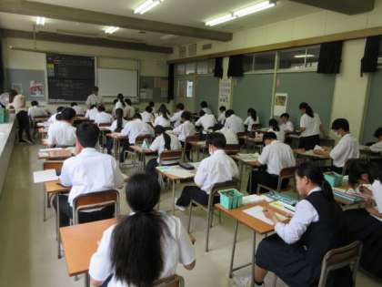 2組は美術で絵文字を作っており、色塗りに入っている生徒もいました。
