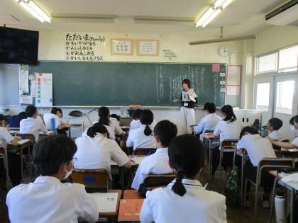 2年生の道徳授業の様子です。各クラス、班になったり感じたことを発言したりしながら考えを深めています。