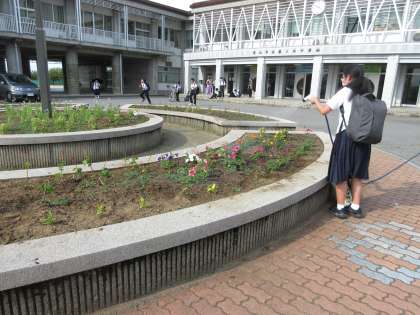 6月20日(木) 美化委員会水やり 公開日 2024/06/20 更新日 2024/06/20 生徒会 放課後、美化委員代表が、水やり当番をがんばっています! 暑い一日でしたので、きっとお花たちも喜んでいますね。