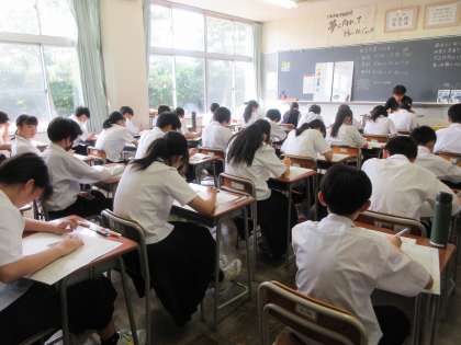 今日は、数学・美術・理科のテストに取り組んでいます。