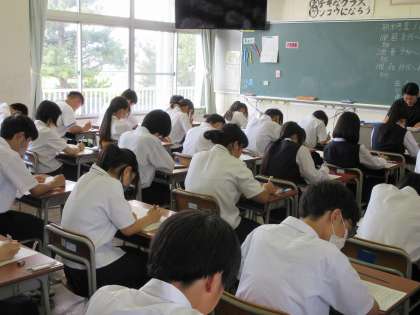 期末考査最終日でした。中間・期末テスト、日々の授業や課題等、いろいろな場面での成果を評価し、いわゆる成績となります。