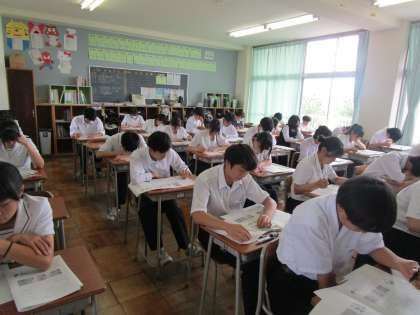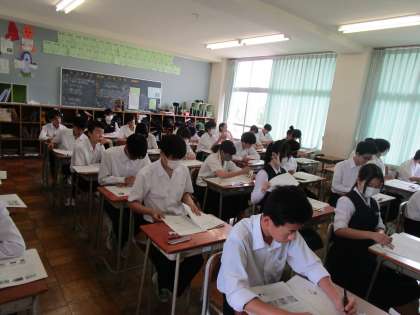 本日期末考査最終日です。3年生は最後の1分まで大切に時間を使って解答用紙に向き合っています。