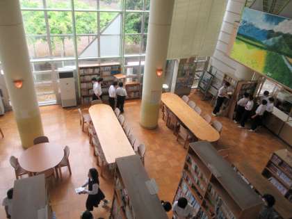 図書室を利用し、それぞれが本を選んでいます。