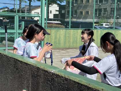 6月29日(土) 富山市民体育大会 ソフトテニス競技 公開日 2024/06/29 更新日 2024/06/29 news 女子は団体戦一回戦、藤ノ木Aチームが見事突破しました。三年生最後の試合とあって、ベンチも一丸となって応援しています。