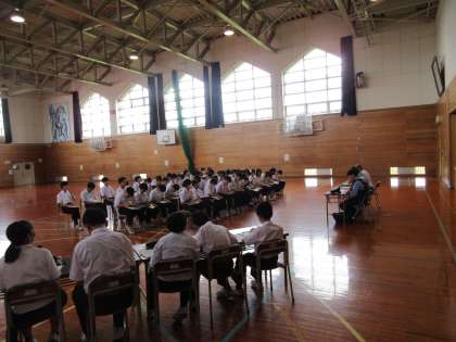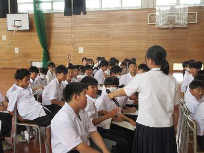 7月1日(月) 1年生 パネルディスカッショングループ1 公開日 2024/07/01 更新日 2024/07/01 1学年 1グループは「交通安全・防犯について」ディスカッションを行いました。 普段登下校している道についての疑問を、自治振興会、防犯連絡協議会、新庄交番の方に答えていただきました。私たちが、知らないことをたくさん教えていただきました。また、私たちの安心安全のためにたくさんの人たちが活動してくれていることを知りました。
