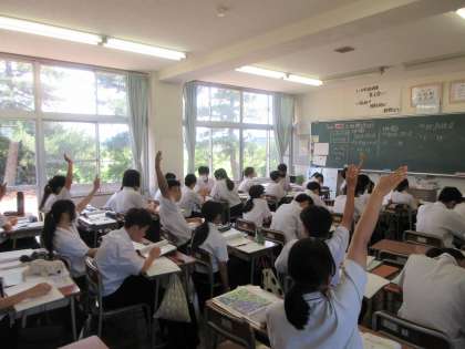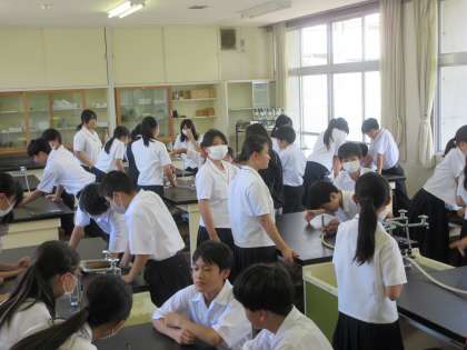上は、1組の理科の授業です。ガスバーナーの操作をしています。