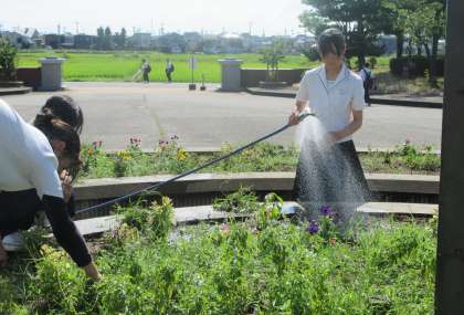 7月5日(金) 縁の下の力持ち 〜花壇を美しく〜 公開日 2024/07/05 更新日 2024/07/05 3学年 花壇の水やり当番の生徒が、水やりだけでなく草むしりもしてくれていました。感謝します!