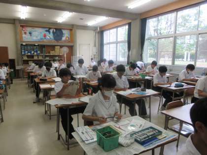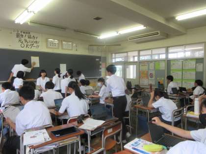 上段:3組 保健体育 クロームブックを使ってスポーツテストの入力を行っています。