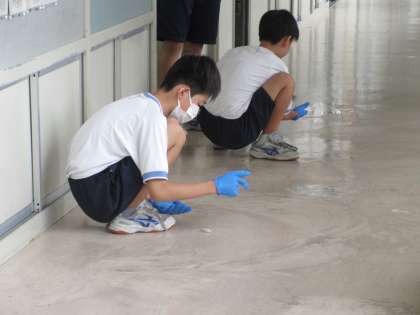 7月9日(火) 2学年 「社会に学ぶ『14歳の挑戦』」 公開日 2024/07/09 更新日 2024/07/09 2学年 学校では、学年廊下の床磨きをしました。綺麗な廊下で皆さんの帰りを待っています。