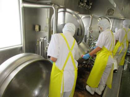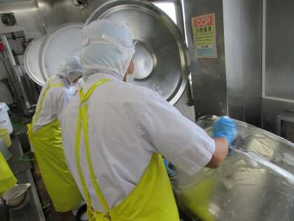 フードシステムの活動の様子です。釜をみんなで洗っています。