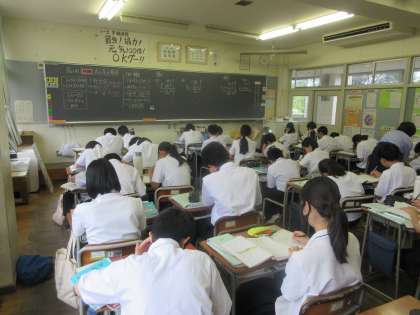 本日の授業の様子です。 上 3組 数学 式の減法について 下 4組 理科 気体の性質について