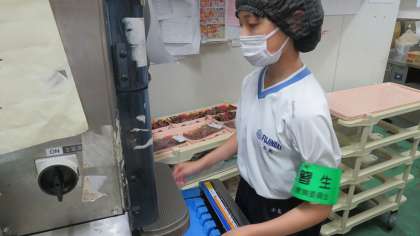 7月10日(水)2学年「社会に学ぶ『14歳の挑戦』」 公開日 2024/07/10 更新日 2024/07/10 2学年 株式会社大阪屋ショップ 秋吉店 上段 棚に味噌、醤油、パン粉などの商品をならべていました。 中段 ラップで包んだニンジンを商品棚に整然とならべていました。 下段 トレイにのせた総菜をラップで包む機械にかけていました。