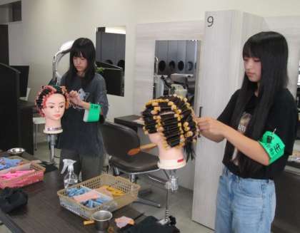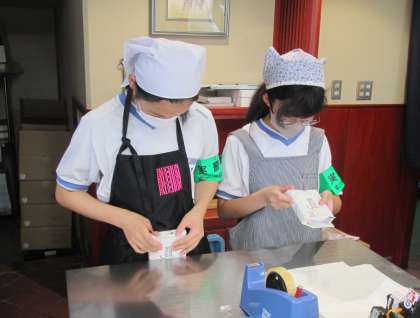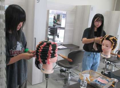 7月11日(木)2学年「社会に学ぶ『14祭の挑戦』」 公開日 2024/07/12 更新日 2024/07/12 2学年 中尾清月堂、ヘアスタジオリアン 中尾清月堂では、お菓子の包装の練習をしていました。 ヘアスタジオリアンでは、ロット巻きの練習をしていました。とても上手に巻けていました。