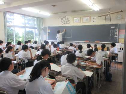 上は3組の家庭科の授業です。新聞づくりをしています。