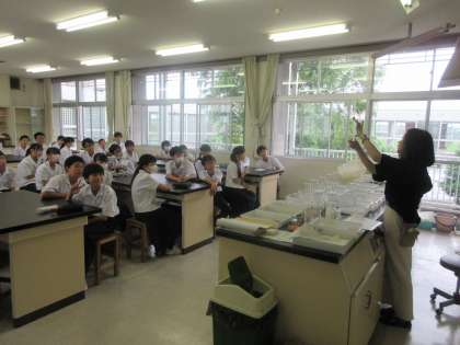 下は4組の理科の授業です。酸素と二酸化炭素の違いについて実験しています。