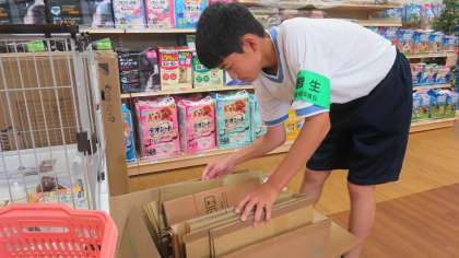 7月12日(金)2学年「社会に学ぶ『14歳の挑戦』」 公開日 2024/07/12 更新日 2024/07/12 2学年 ワンラブ アピア富山店 商品の棚だしをしたり商品が入っていた段ボールをたたんで整理したりしました。猫を抱きながら爪切りをしたり、耳そうじをしてあげました。