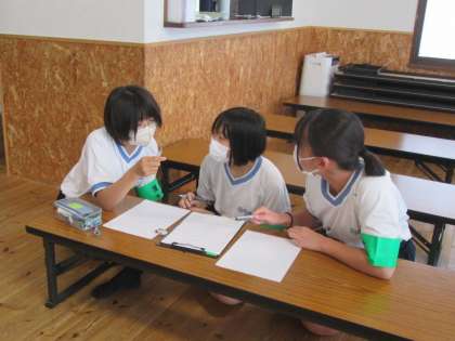 今日は小学生にお楽しみ会をするために、三人で会の進め方やプログラムを話し合っていました。楽しい会になりますように。
