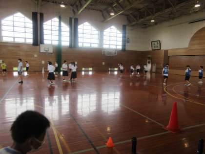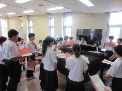 本日の授業の様子です。 上:1組 保健体育 サッカーのミニゲーム 下:2組 音楽 混声3部合唱