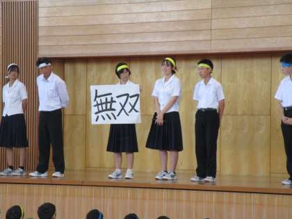 団長とデコレーション係長が意気込みを述べた後、スローガンを紹介しました。