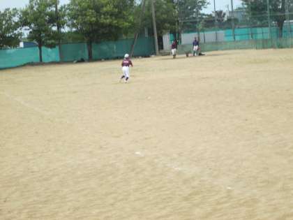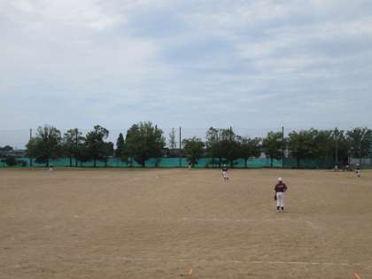 紫の練習着で野球部が頑張っていました。懇談会で顧問の先生がいないので生徒がノックをしていました。