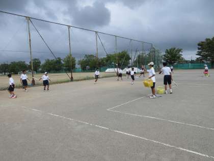 8月16日(金)夏休みの部活動(男子ソフトテニス部) 公開日 2024/08/16 更新日 2024/08/16 news 男子ソフトテニス部の活動の様子です。お盆明け初めての練習で、基本打法の練習をしています。