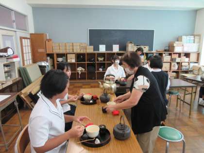 茶道部の活動の様子です。講師の先生をお招きし、作法の確認をしていました。