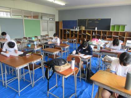 上段:剣道部 暑い中、面を付けて練習です。 下段:美術部 各自の課題に取り組んでいます。