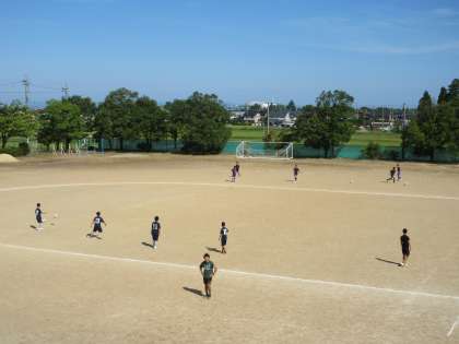 上段:サッカー部 堀川中と合同で練習しています。 下段:女子バドミントン部 ラリーをしています。