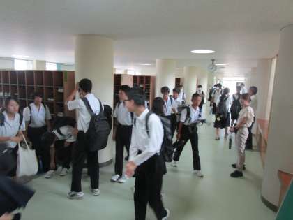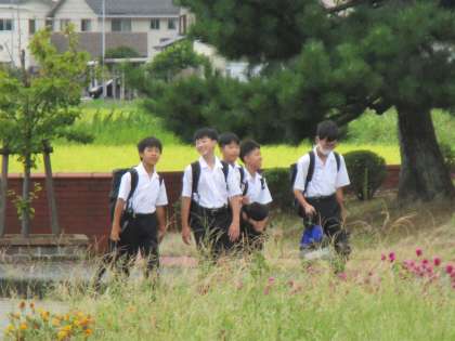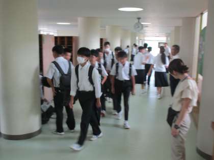 2学期のスタートの朝です。みんな元気に挨拶をして玄関に入ってきます。久々に会う友達や先生とも会話が弾みます。