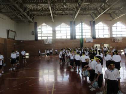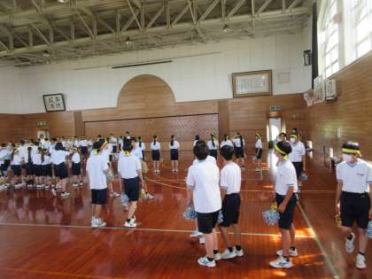 体育大会に向けて、本日より団別活動が始まりました。熱中症対策として、今日は各団屋内での活動を行いました。