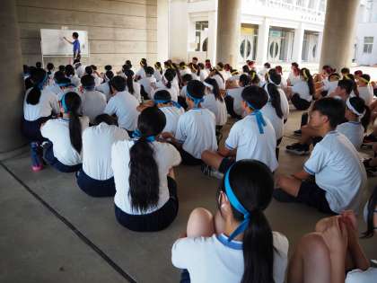 今日は綱が置いてあることを想定し、綱引きの動きの確認を行いました。