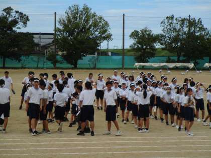 今日は晴れのち曇りで晴間があり、グラウンドをめいいっぱい使って活動することができました。グラウンド中央で場所の確認を念入りに行っていました。