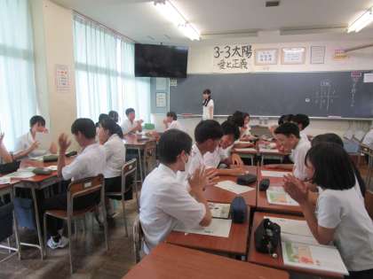 3年生道徳の様子です。各クラスで、グループになって考えたり意見を交換したりしながら活発な意見交換をしました。
