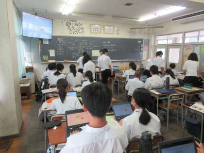 写真上段ー3組 家庭科 五感が喜ぶ豚汁作り