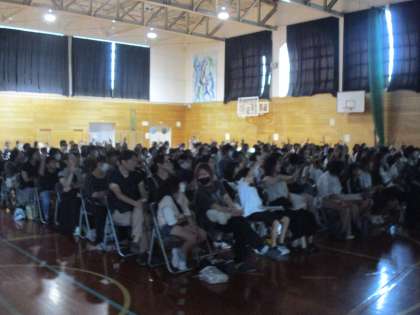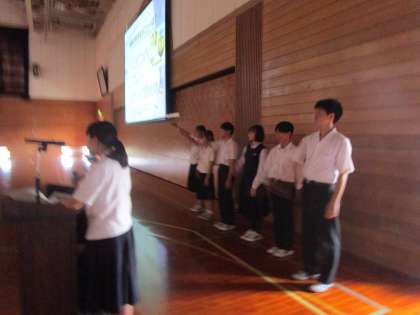 学校説明では、生徒会執行部がクイズを交えながらプレゼンテーションしました。6年生児童も元気に答えてくれ、盛り上がりました。