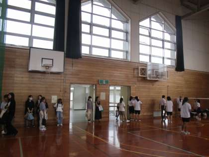 学校説明の後、希望者による部活動見学を行いました。外はあいにくの小雨になりましたが、わずかな時間でも見学していただこうと精一杯プレーしています。
