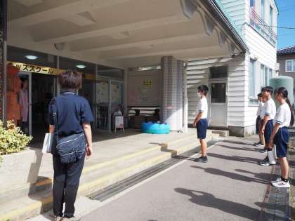 本日は、3年2組の生徒が家庭科の授業でこども園訪問に出かけました。