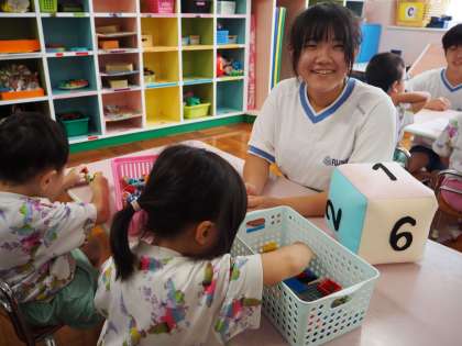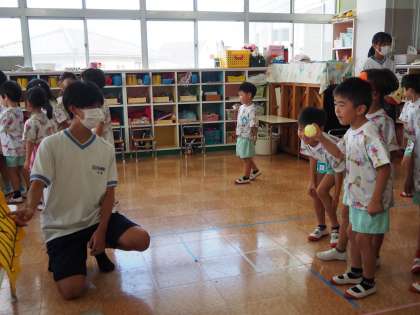 夏休み中に作ったこだわりのおもちゃで園児と楽しい時間を過ごしました。
