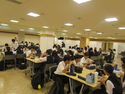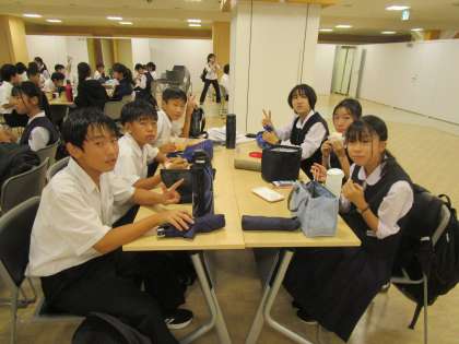 お昼のお弁当の様子です。あいにくの雨模様でしたが、元気に高岡市内をまわったり体験活動をしたりしました。昼食は、オタヤセリオの5階で食べる班が多かったです。