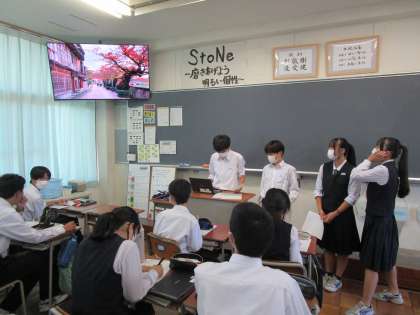 10月21日(月) 2学年 公開日 2024/10/22 更新日 2024/10/22 2学年 総合の時間では、金沢校外学習の班別コースの発表会を行いました。 スライドに見所等をまとめて、見る人を惹きつける工夫を行っていました。