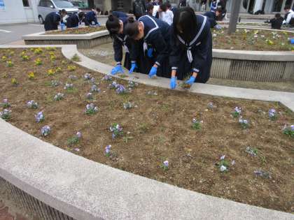 美化委員会で花壇の草むしりをしました。後期になり、新しい花が届いたので、さびしかった花壇が明るくなりました。がんばってお世話を続けていきたいと思います。