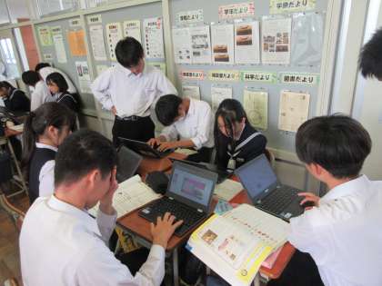 11月5日(火) 学校訪問研修会 公開日 2024/11/05 更新日 2024/11/05 news 学校訪問研修会の授業公開に向けて、ICTの有効活動や、生徒同士の学び合いの場、個人の考えもつ場等、授業の工夫をしています。 生徒も主体的に考えたり意見を述べたりしていました。