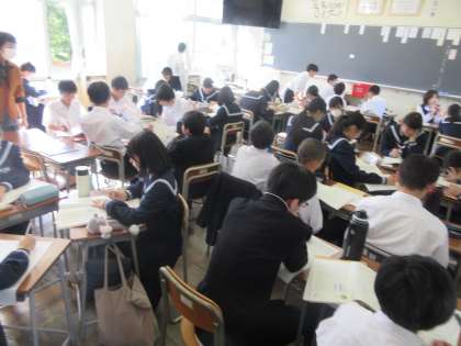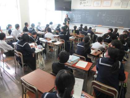 4組は理科の「凸レンズによる像のでき方」で黒板のイラストを見ながら学習しています。