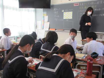 11月12日(火)1年生 授業風景 公開日 2024/11/12 更新日 2024/11/12 1学年 上段:1年3組 社会「東南アジアの国の経済発展とは」 下段:1年4組 英語「英語劇のシナリオを考えよう」