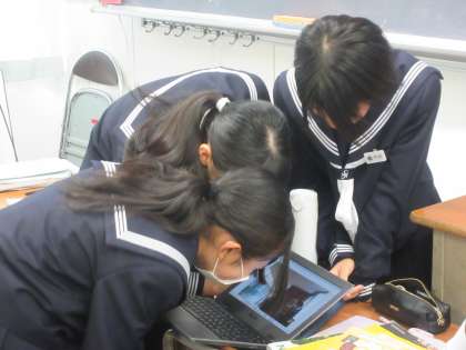 「小学生に中学校の生活を紹介しよう」という内容で、部活動を紹介したり、学校を紹介したり、と、それぞれのグループで考え、撮影がすすめられています。