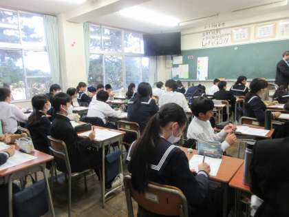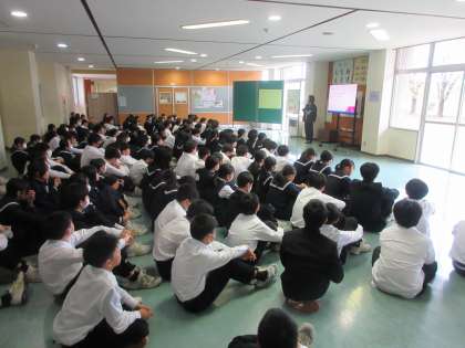 学年集会で、学年主任から学習の進め方について説明を受けました。