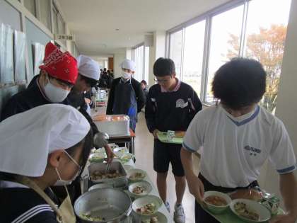 給食準備、配膳中です。今日もしっかり食べて、午後の活動に備えましょう!